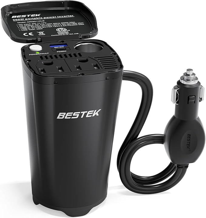 BESTEK 200W Power Inverter, 12V DC to 110V AC Car Plug Adapter
